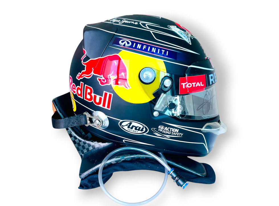 The helmet was hand-signed by Vettel on the visor tear off, in silver marker.